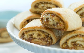 Rugelach, which means "little horns", is a delicious cookie of Jewish heritage. These bite sized crescent cookies are made with a rich cream cheese dough that is filled with either poppy seeds, jams, nuts or fruit.